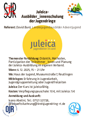 Zur Unterstützung der Schulungsarbeit und zur Entwicklung des Ausbildungsstandes im Verein bieten der SJR und KJR Reutlingen diese eintägige Schulung an.